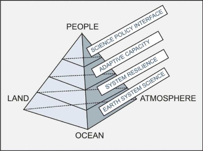 The Earth System functions as a result of interactions between the land, the oceans and the atmosphere. People depend on the services provided by these linked land-ocean-atmosphere sub-systems for their existence